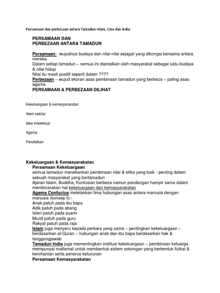 32152425 Persamaan Dan Perbezaan Di Antara Tamadun Islam Docx Documents