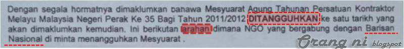 Orang Ni Bukti Bersurat Persatuan Kontraktor Melayu Malaysia Negeri Perak Adalah Kuda Tunggangan Barisan Nasional
