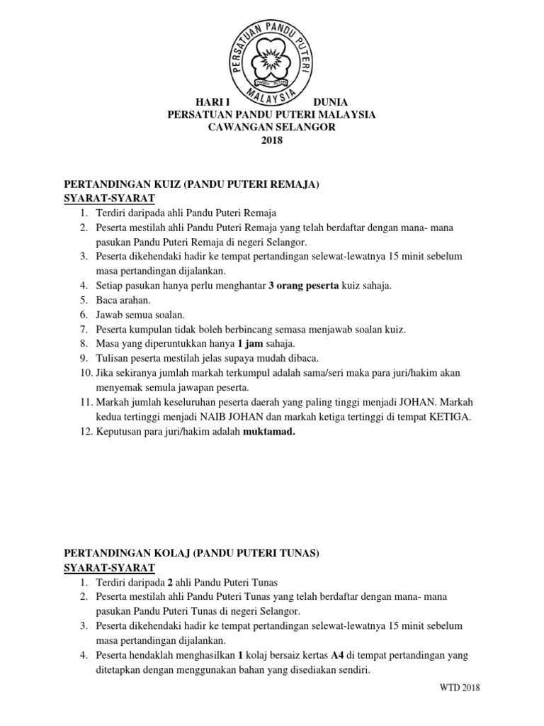 Syarat Syarat Pertandingan 1 Dibuka Persatuan Pandu Puteri Malaysia Kuala Langat Selangor Facebook