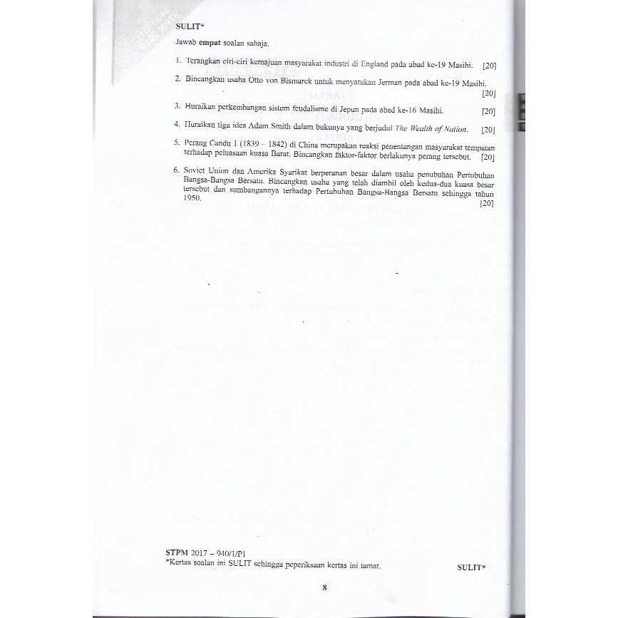 Kertas Soalan Peperiksaan Stpm Sejarah 2015 2020 Shopee Malaysia