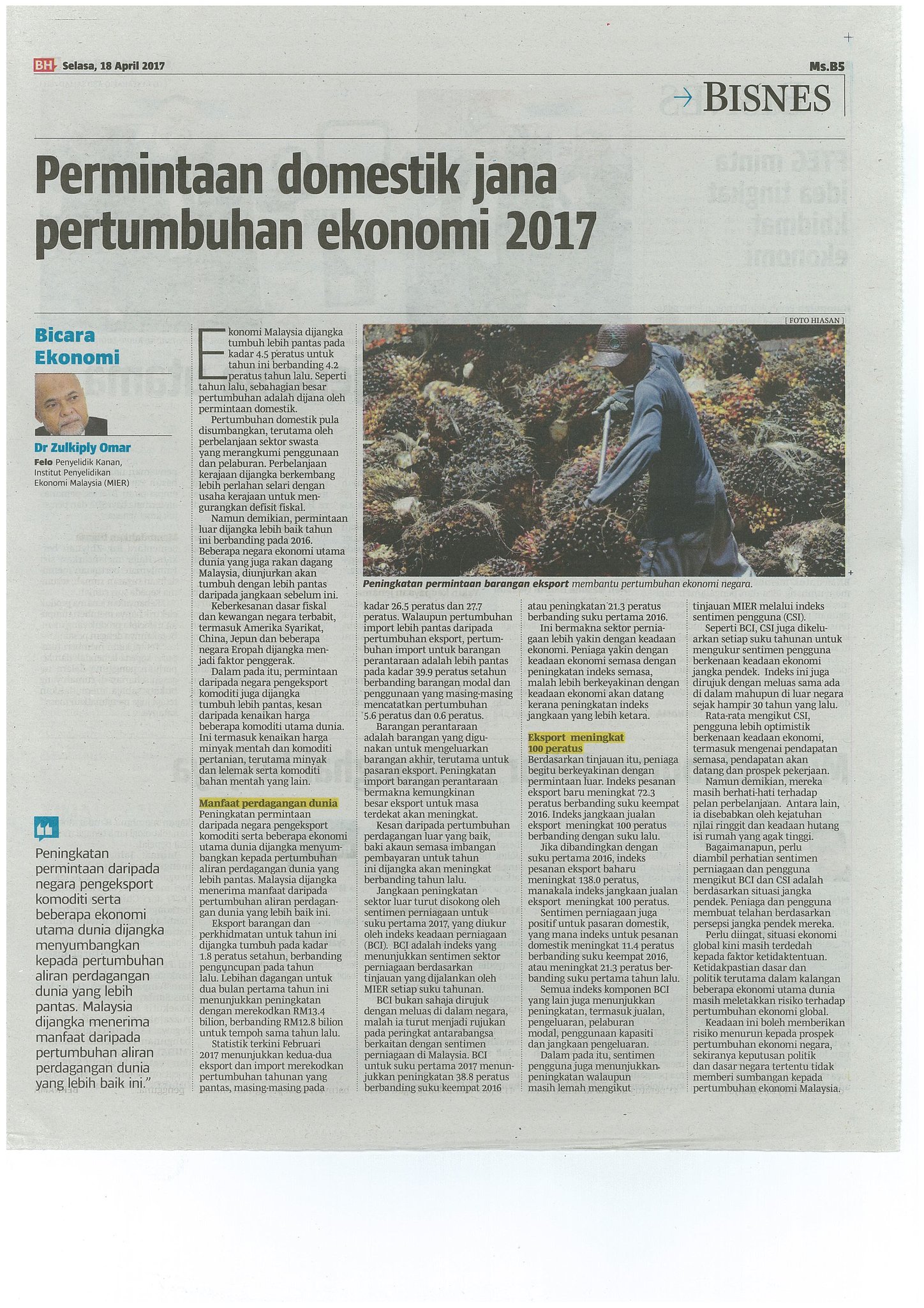 Mier On Twitter Permintaan Domestik Jana Pertumbuhan Ekonomi 2017 Oleh Dr Zulkiply Omar Senior Research Fellow Mier Pada 18 April 2017 Berita Harian Https T Co Uhuhfwwbkx