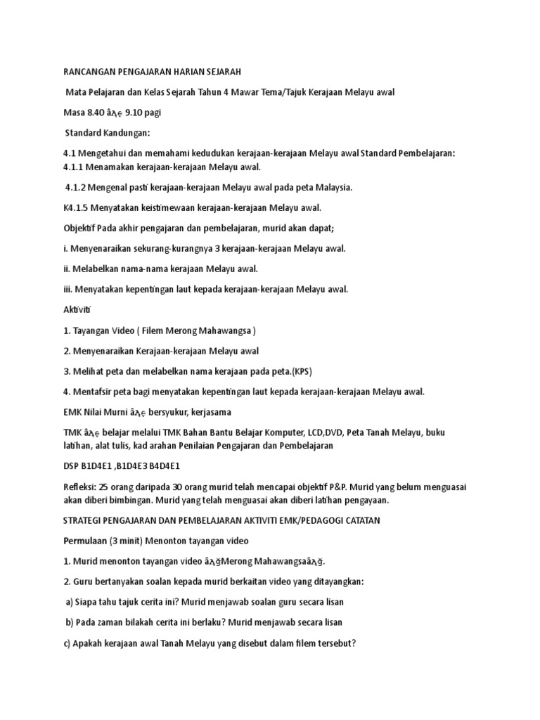 Sejarah Tahun 4 Kerajaan Kerajaan Melayu Awal