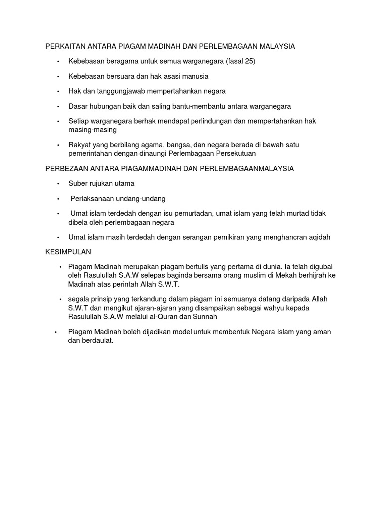 Perkaitan Antara Piagam Madinah Dan Perlembagaan Malaysia Docx