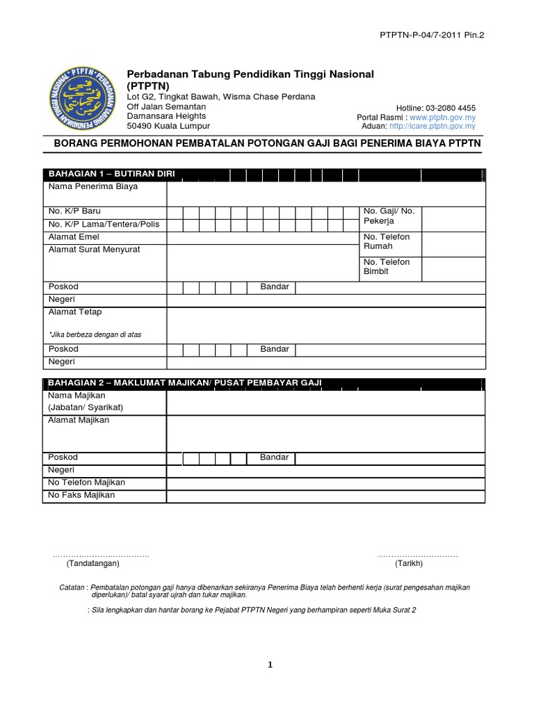 Borang Permohonan Pembatalan Potongan Gaji Pin2
