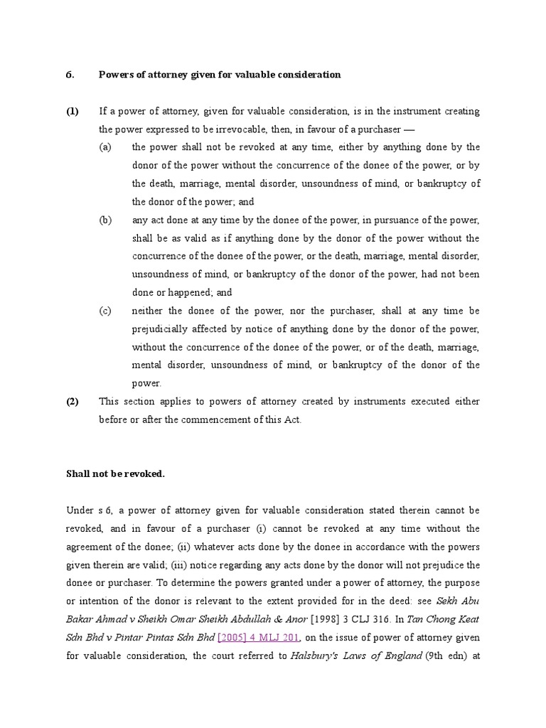 Section 6 Powers Of Attorney Act 1949 Power Of Attorney Consideration